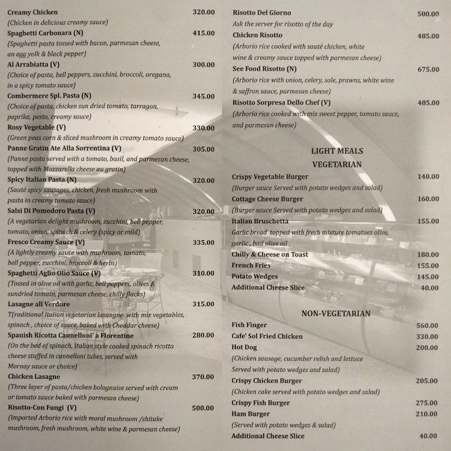 Cafe Sol Shimla Menu : Order in advance and relax!