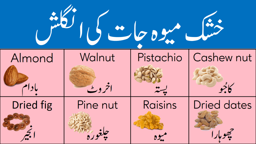 Dry Fruits Names - Learn dry fruits names in english and urdu meanings with images.