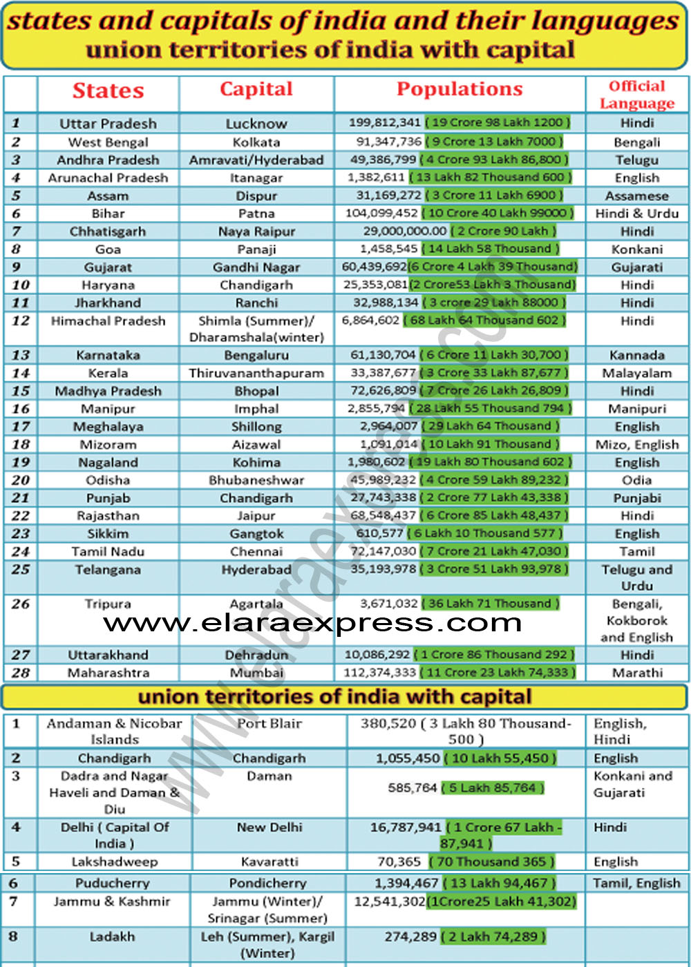 Union Territories 29 States Of India And Their Languages / So indian constitution give right to the central government to make states as it feel suitable.